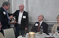 Several months ago, Phil Wolff presented a new idea for an "Anchor of Excellence" award to recognize members who have served the club in exceptional ways. Phil wrote up the proposal, and it was adopted by the Club. Phil assembled a nominating committee, including Jim Donovan and John Ables, and they solicited nominations from the membership and decided on a recipient. Jim Wolfe designed and built the award. At the WBA Holiday Party on December 3, Phil and Jim presented the award to David Kanally.