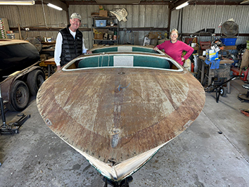 (Above) Scott Masikowski has his Continental at Emerson Bay Boat Works in McAlester, OK. Jay has been working hard on the boat, and mentoring Scott along the way.